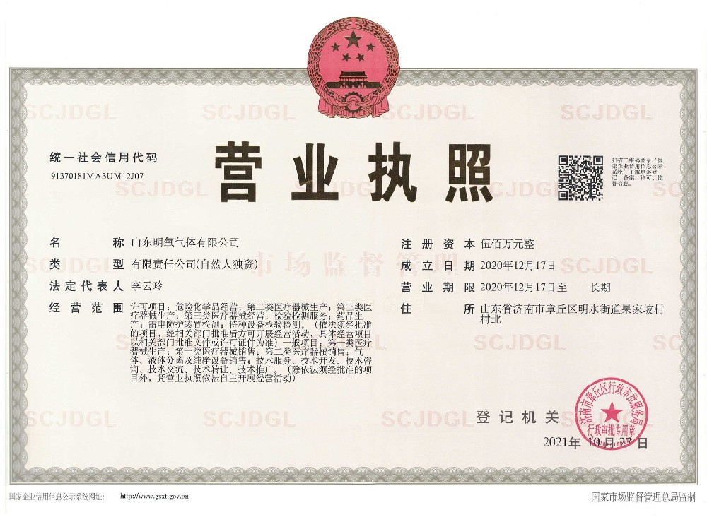 ??? 山東明氧氣體有限公司的前身為始建于1993年的章丘市明水氧氣廠,2020年12月企業(yè)由民營獨資轉(zhuǎn)型升級為山東明氧氣體有限公司,企業(yè)進入新的發(fā)展階段。公司位于山東省濟南市章丘區(qū)明水街道杲家坡村村北,占地面積4000平方米,注冊資金500萬元,固定資產(chǎn)投資3000萬元,主要經(jīng)營項目為醫(yī)用氧氣、工業(yè)氧氣、氮氣、高純氮氣、氬氣、高純氬氣、高純氦氣、二氧化碳、混合氣體等各種工業(yè)氣體、高純氣體、混合氣體的充裝銷售、各類氣瓶的銷售、安全閥校驗、鋼質(zhì)無縫氣瓶的檢驗等。
